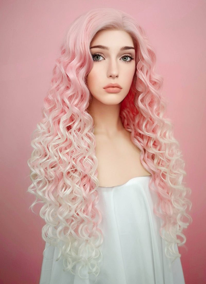 Spiral Curly Pastel Pink Blonde Ombre Lace Front Synthetic Wig Lf165 Wig Is Fashion
